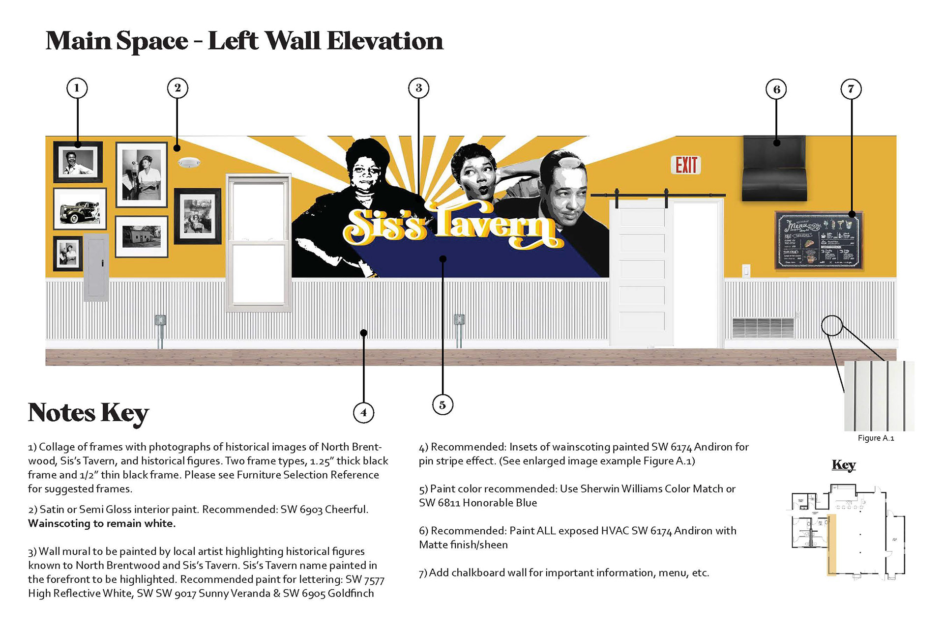 Once home to a grocery store, barbershop, tavern, and “Juke Joint,” Sis’s Tavern stands as a testament to North Brentwood’s resilience and self-sufficiency. As a volunteer designer through a pro bono initiative organized by the Neighborhood Design Center, I led the interior design and branding efforts to reimagine the space as a vibrant, contemporary venue—one that honors its rich legacy while welcoming a new generation.