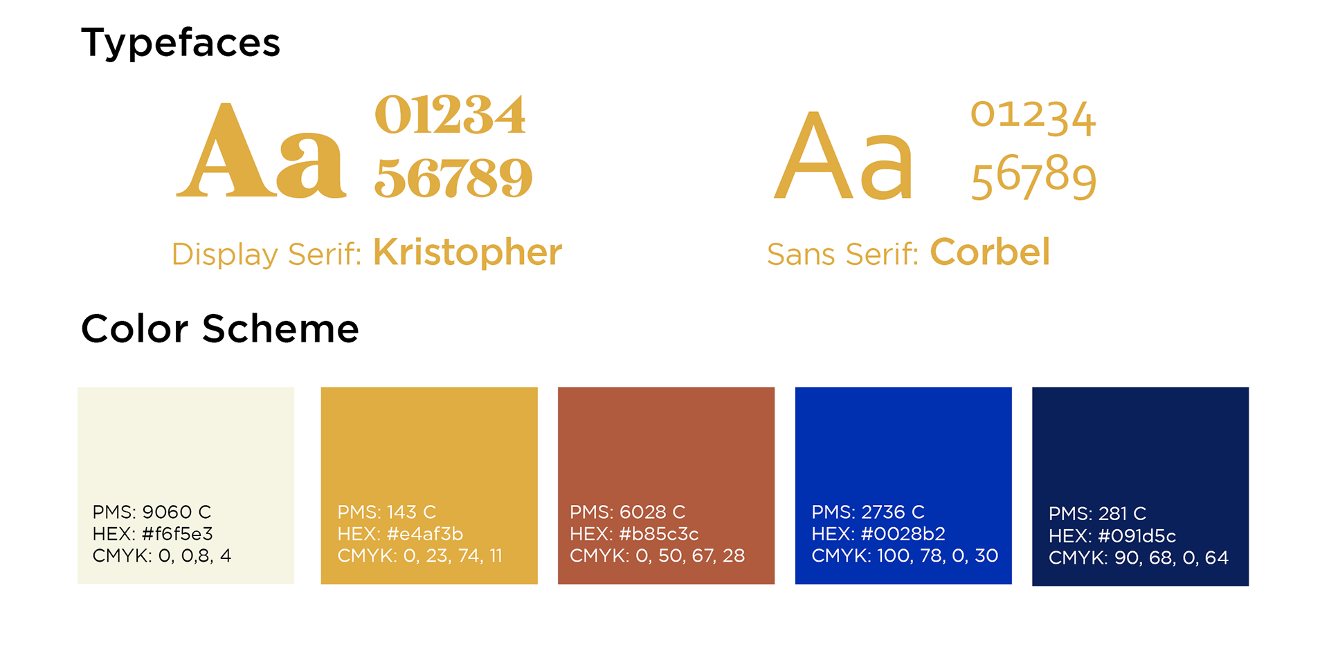 Although this was primarily an interiors project, establishing a cohesive visual identity was essential—and that identity extended into the presentation materials. The typeface Kristopher captures the elegance and edge of Sis’s Tavern with its exaggerated serifs, irregular curves, and flamboyant ligatures, making it an ideal choice for headers and subheaders. Corbel serves as the perfect supporting typeface—its clean, modern sans-serif design offers a strong contrast to Kristopher’s ornate style, ensuring readability in paragraphs and captions while maintaining balance throughout the design